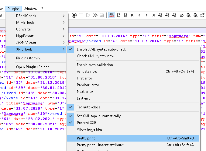 Файл можно откорректировать текстовым редактором, например Notepad++ (у него есть возможность отформатировать файл для удобства командой Pretty print